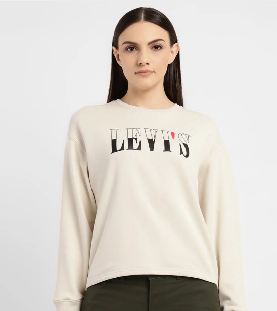 WOMEN'S GRAPHIC PRINT BEIGE CREW NECK SWEATSHIRT