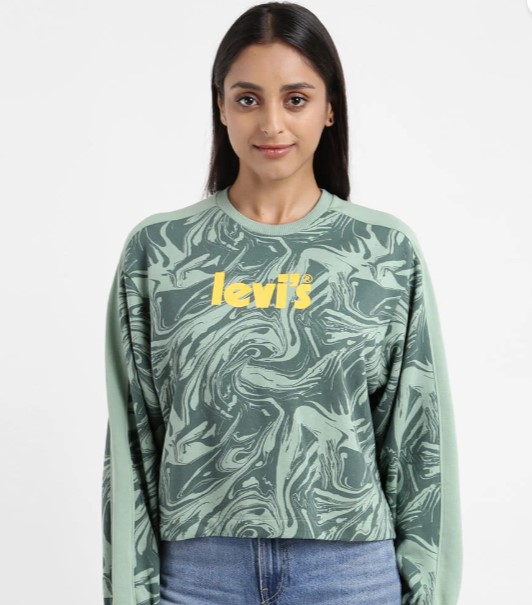 WOMEN'S PRINTED GREEN CREW NECK SWEATSHIRT