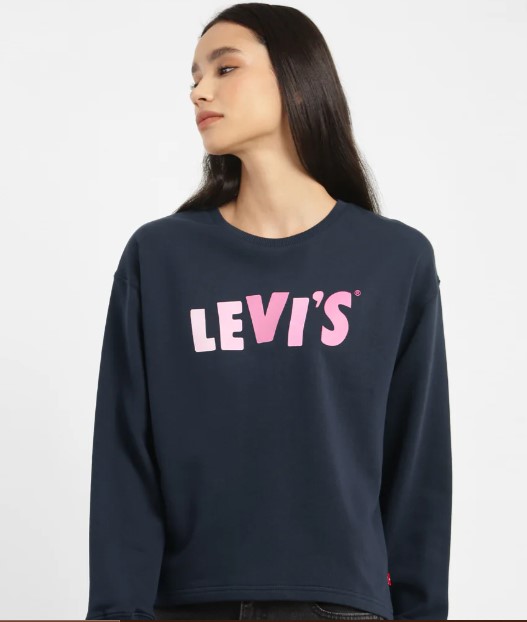 WOMEN'S GRAPHIC PRINT NAVY CREW NECK SWEATSHIRT