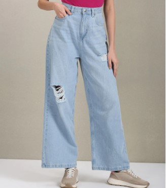 High Rise Wide Leg Distressed Jeans
